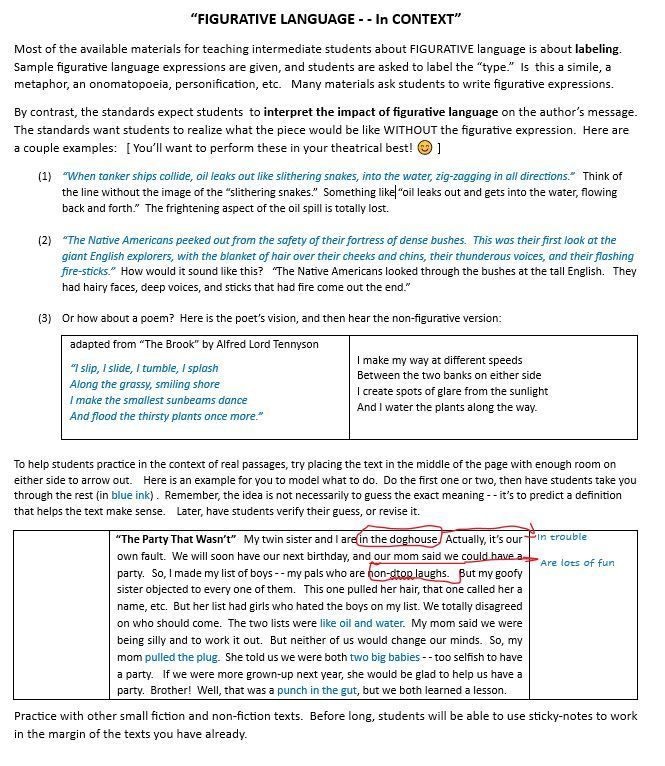 context to predict the meaning of unfamiliar words, display a small passage (from science, social studies, literature, etc.) that includes unfamiliar terms - - bolded. Say “Suppose we saw this passage on an important test. There is no time to look up the bold words, but we need to try to define them to unlock the meaning of the text.”