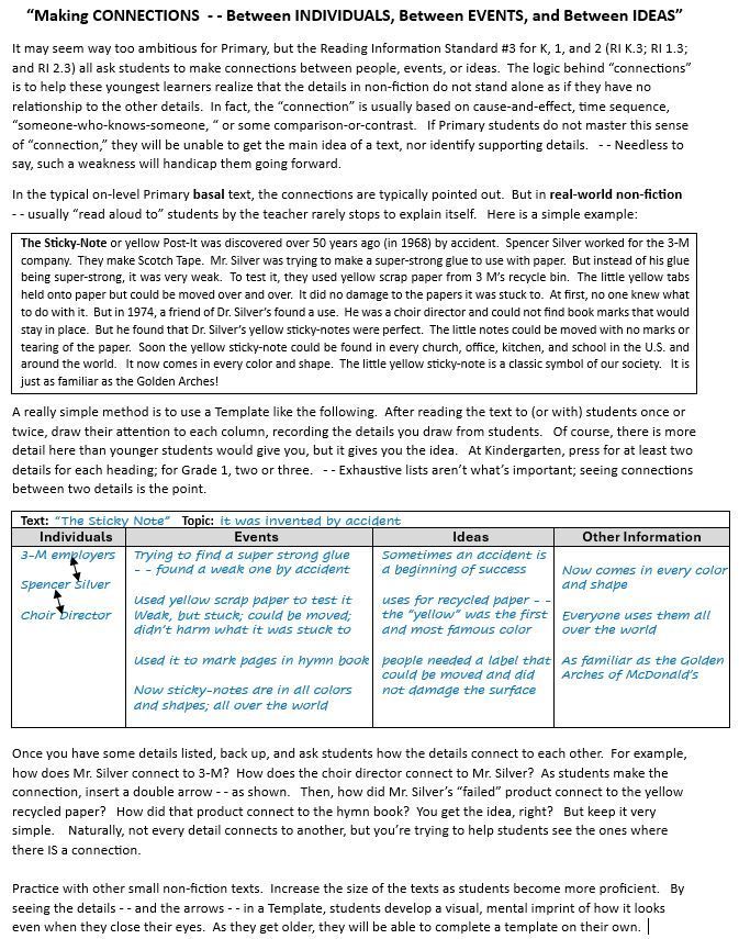 The transition to text begins with a few scenarios that are full of explicit detail. Ask students to make viable inferences. Then - - in the lower rows of the able, do the reverse. For each inference, make up a few sentences that have the explicit detail to support it.
