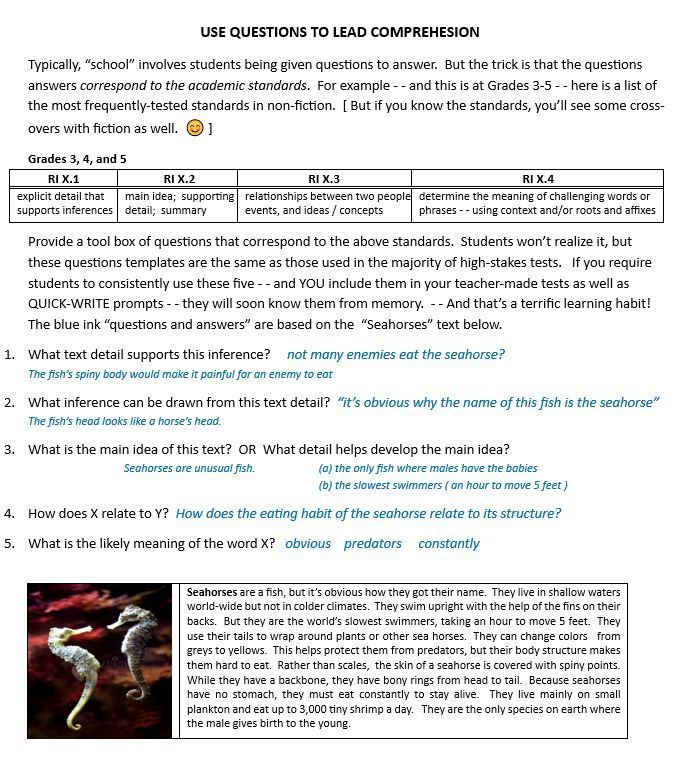 “Question 2: Write a question whose answer must be inferred . . . . where we must look between the lines or behind the text.”